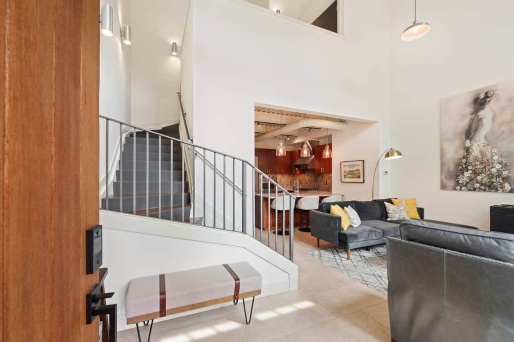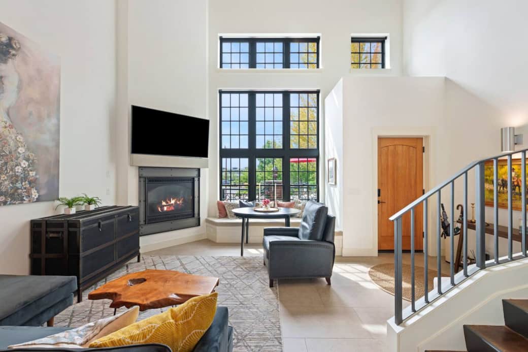 An exceptionally rare fully furnished Mill Quarter brownstone in Bend’s Old Mill District, designed for elevated urban living. Inside, you’ll find soaring ceilings, dramatic two-story windows, and exposed architectural details that fill the home with natural light. The gourmet kitchen features premium appliances, quartz countertops, and custom cabinetry—perfect for everyday meals or entertaining.